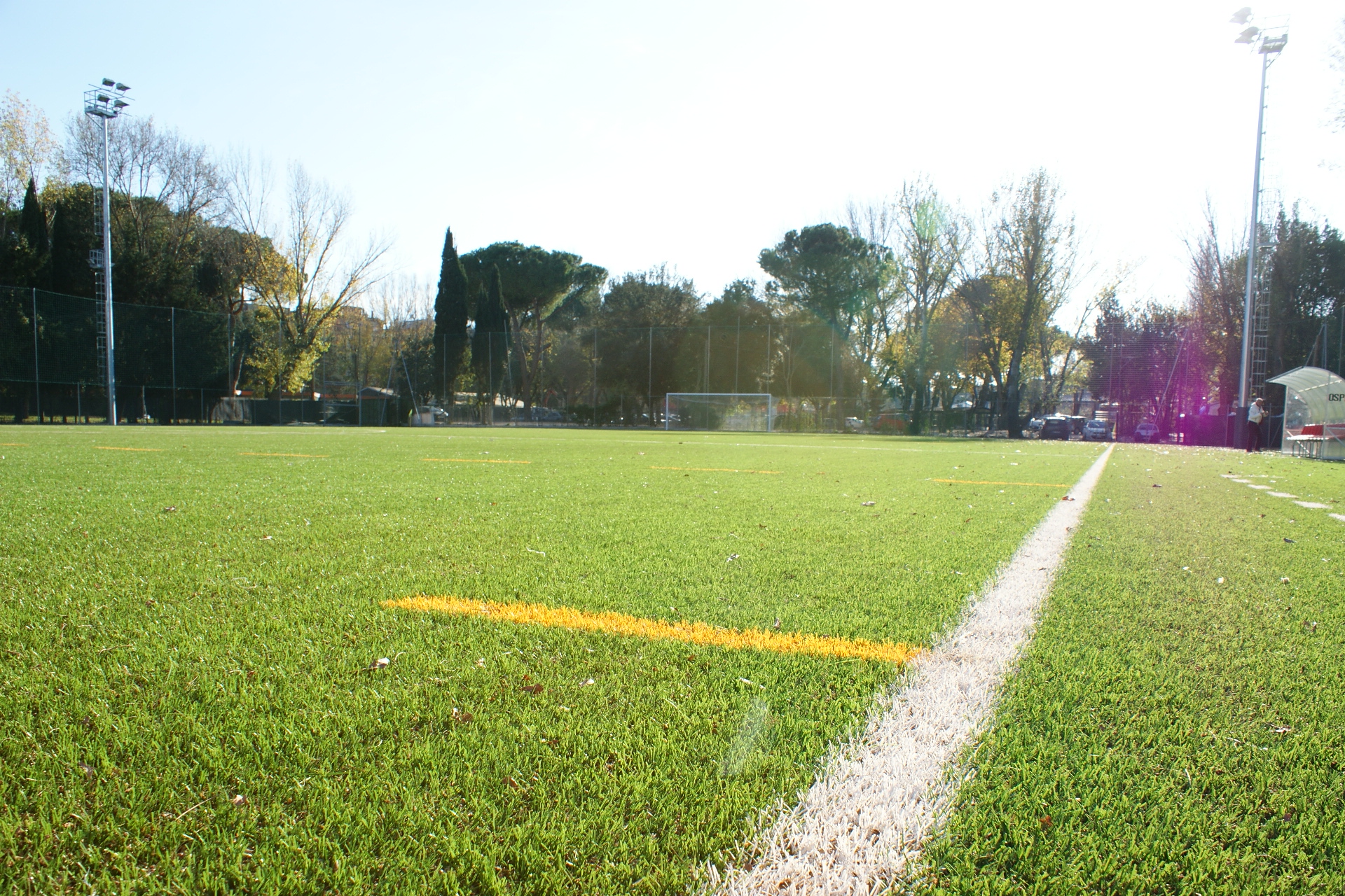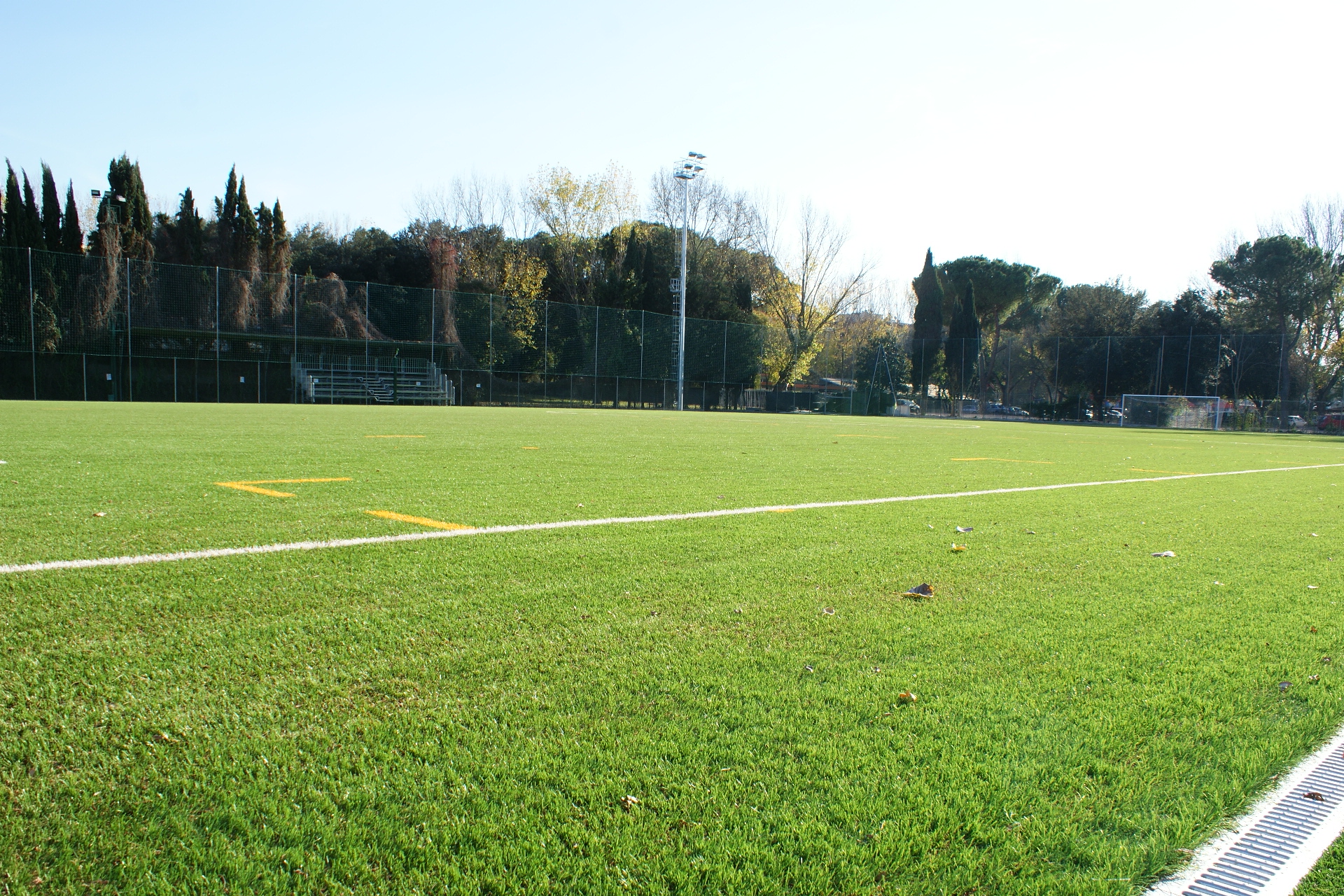 Rifacimento completo dell'impianto sportivo con realizzazione del nuovo campo in erba sintetica di ultima generazione, nuove torri faro e campo di padel.